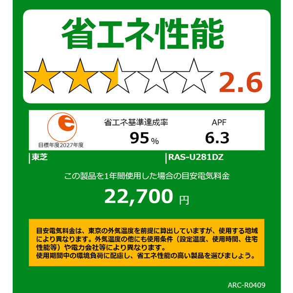 APF(通年エネルギー消費効率):6.3