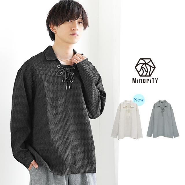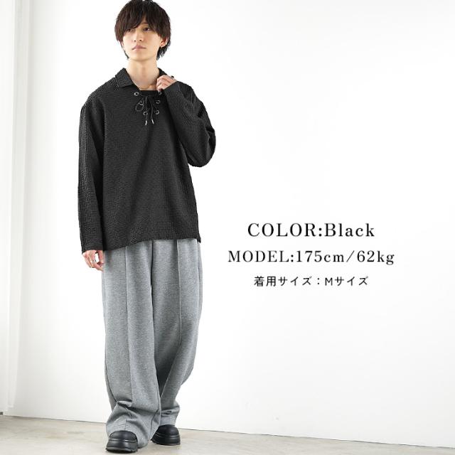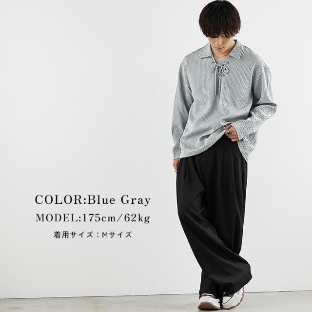 新作 ポロシャツ メンズ 長袖 おしゃれ スキッパー ポロシャツ 長袖 Vネック シアサッカー プルオーバー メンズ オーバーサイズ ビッグシルエット 無地 黒 ブラック 青 ブルーグレー 春 春服 韓国 メンズファッションマイノリティ