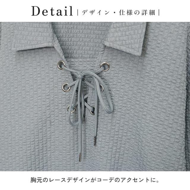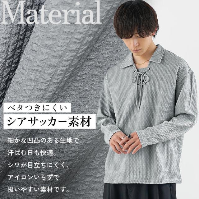 「この一癖がお気に入り」シアサッカーレースアップポロシャツ【シアサッカーレースアップポロシャツ】