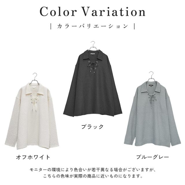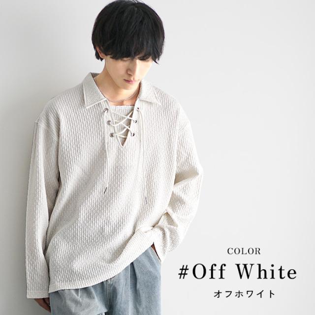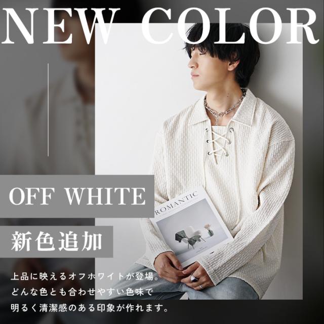【シアサッカーレースアップポロシャツ】\新色「オフホワイト」追加/