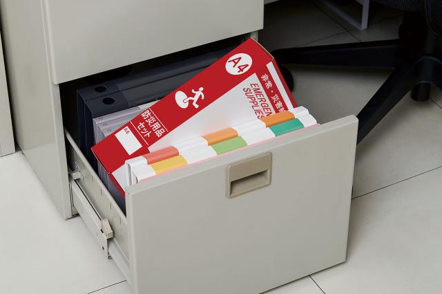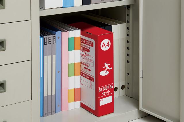 A4サイズパッケージ入りで、書棚やデスクの引き出しに収納可能。