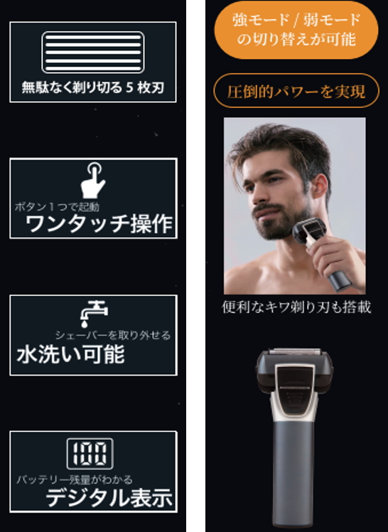 直送品・パワーモード搭載5枚刃電動シェーバー メンズシェーバー シェーバー コードレス 5枚刃シェーバー 5枚刃 男性用 紳士用 メンズ 防水 お風呂 ヒゲ剃り 髭剃り ひげそり シェービング 水洗い 旅行 仕事 出張 便利 グッズ おすすめ 人気 通販 販売