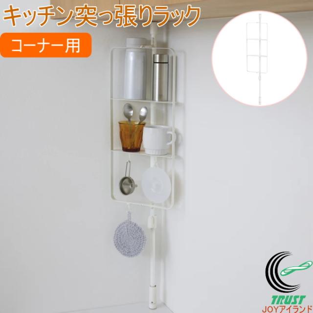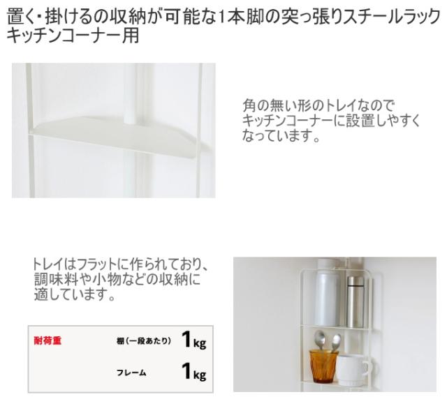 キッチンつっぱりラック コーナー用 マットホワイト SPL-6WH 簡易式 圧着 スチールラック キッチンラック ラック 棚 収納 マグネットフック付き 調理器具 調味料 突っ張り つっぱり 1本脚 伸縮 省スペース スリム コーナー用 おしゃれ 平安伸銅工業