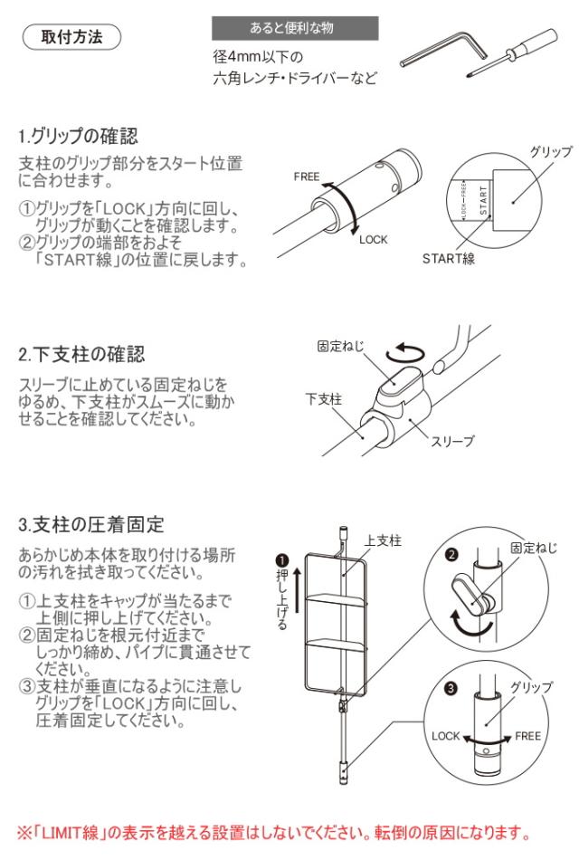 キッチンコーナーに設置しやすい形の1本脚の突っ張りスチールラックです。置く・掛けるの収納が可能です。 角の無い形のトレイなのでキッチンコーナーに設置しやすくなっています。 トレイはフラットに作られており、調味料や小物など収納が可能です。 3cmの隙間があれば工具不要で設置が可能です。 下支柱にあるグリップの穴に六角レンチやドライバーを差して回すことで強力に圧着することも可能です。 ふきんなどの吊り下げに便利なマグネットフック3個を付属。 ※画像はイメージの為、食器などの小物類はつきません。 ■その他のつっぱり収納はこちら↓ つっぱり収納 ■その他のキッチン収納はこちら↓ キッチン収納 |