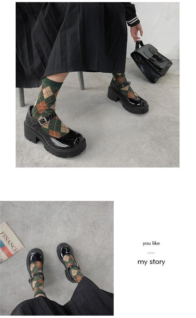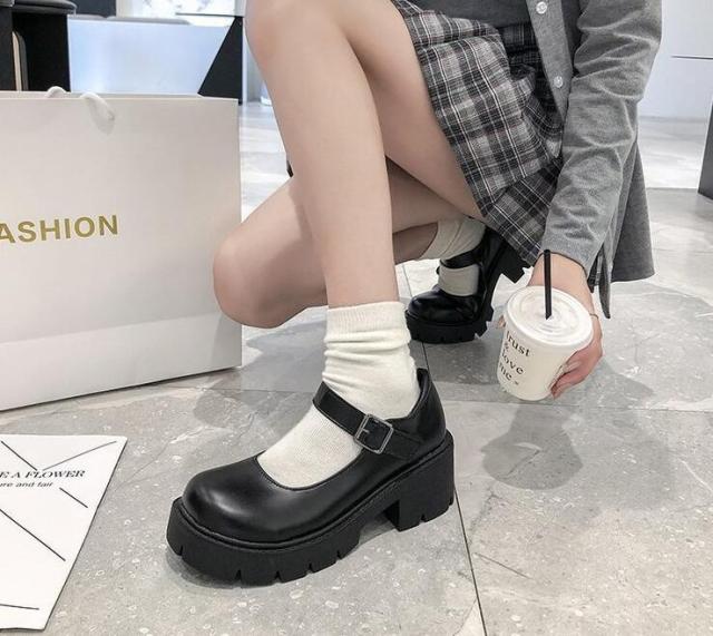 ローファー 5cm レディース 光沢感 ストラップ 合皮 厚底 ミドルヒールシューズ ハイヒール シューズ ローヒール靴 ストラップシューズ パンプス 可愛い 学生靴 通勤 通学 学生 女子高生 歩きやすい 防滑 美脚 ゴスロリ
