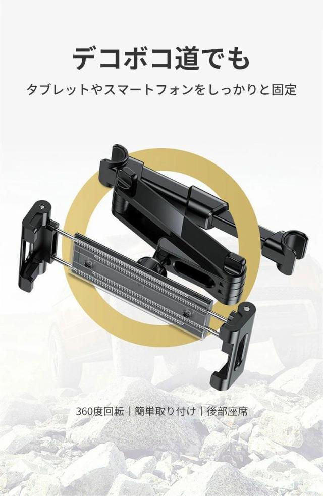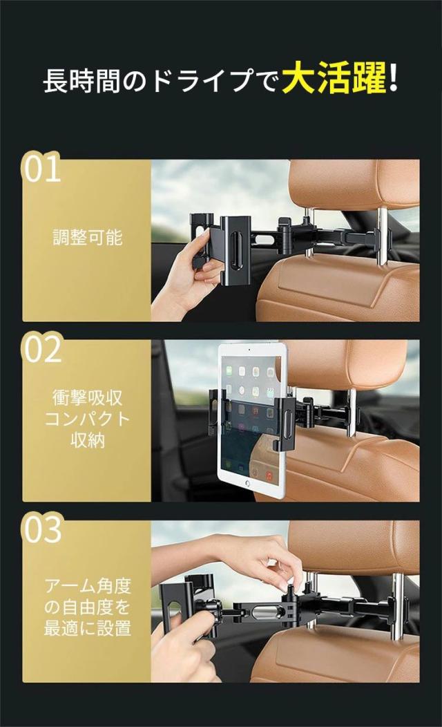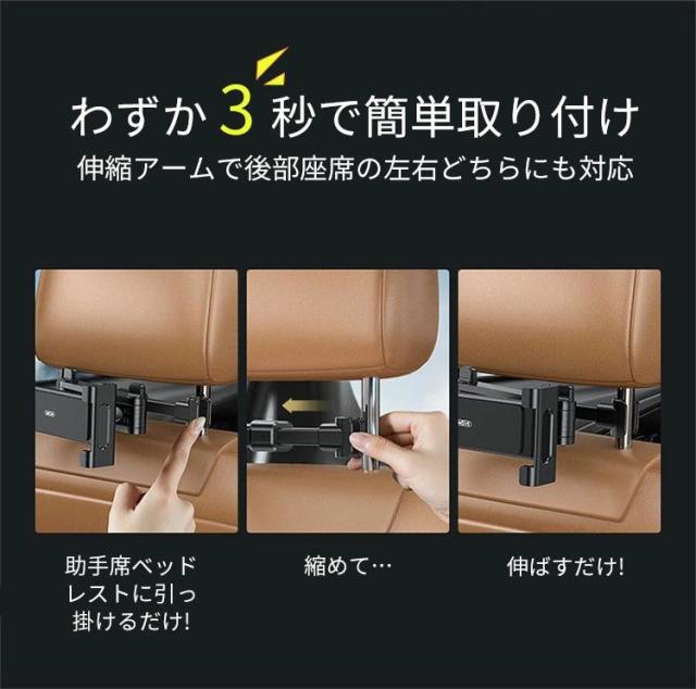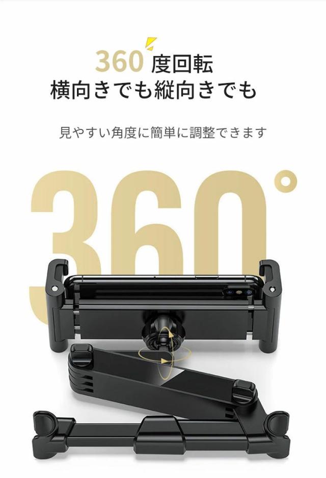 後部座席 車載ホルダー タブレットホルダー 取付け簡単 工具不要 ヘッドレスト 伸縮アームスタンド ipad車載 スマホホルダー 360度回転 自由調節 スマートフォン 4〜13インチ iPad Pro Air Mini Nintendo Switch 滑り防止