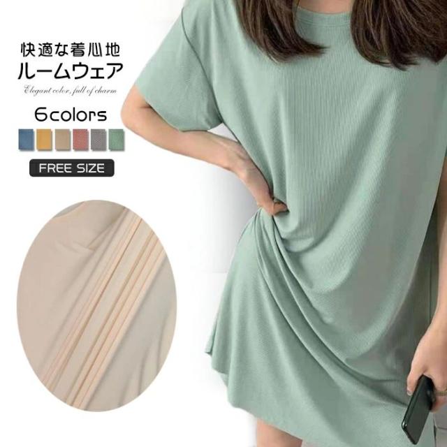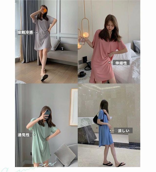 ルームウエア ワンピースパジャマ 接触冷感 レディース 半袖 パジャマ ナイトウエア リブ 涼しい 部屋着 無地 ひんやり 春夏 かわいい 伸縮性 おうち時間 リラックス 寝間着 涼しいパジャマ ゆったり シンプル