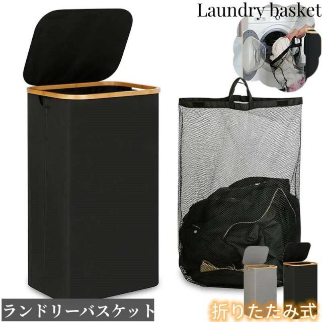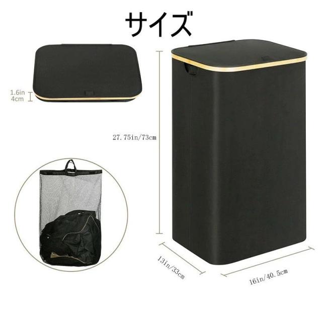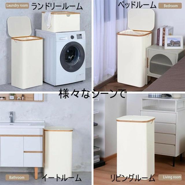 折りたたみ式ランドリーバスケット インナーバッグ付き 95L大容量 73cm スリムランドリーバスケット 蓋付き 衣類バスケット オーガナイザー 寝室 ランドリールーム 寮用 おしゃれ スリム 防水 洗濯 おすすめ 人気 持ち手付き 大きい