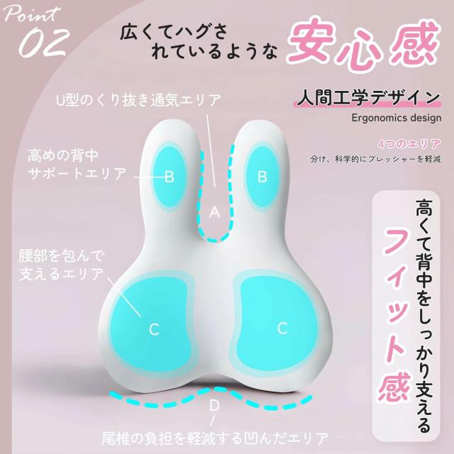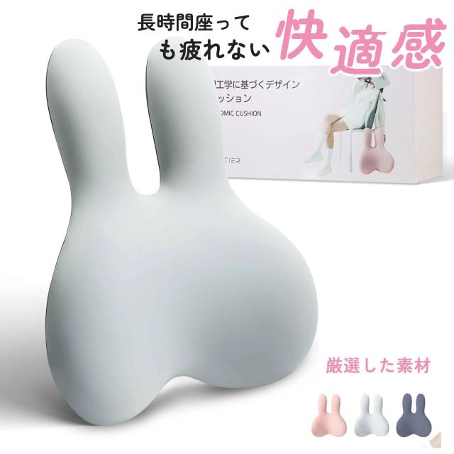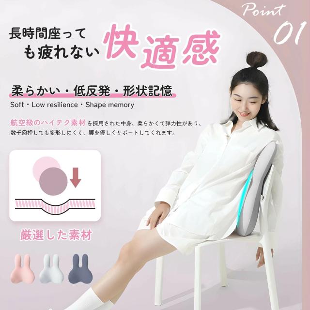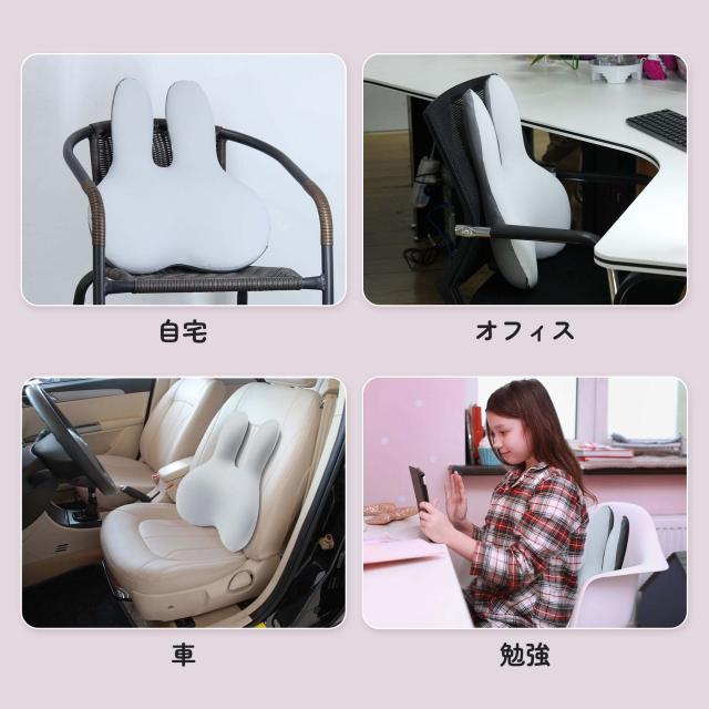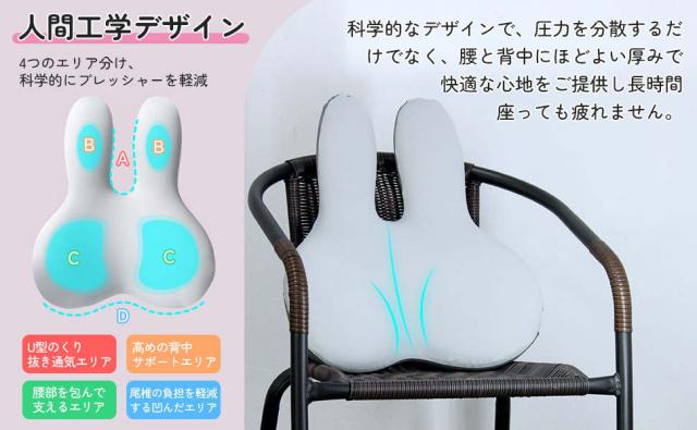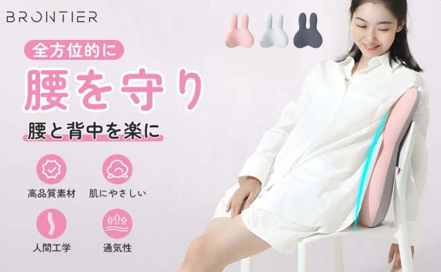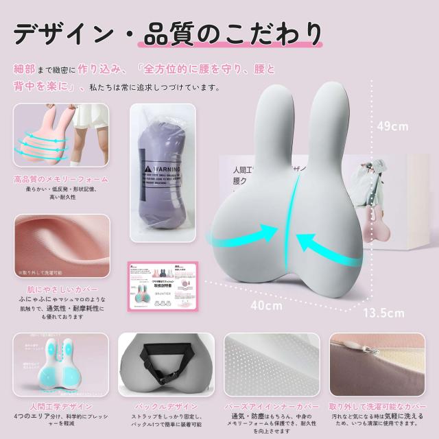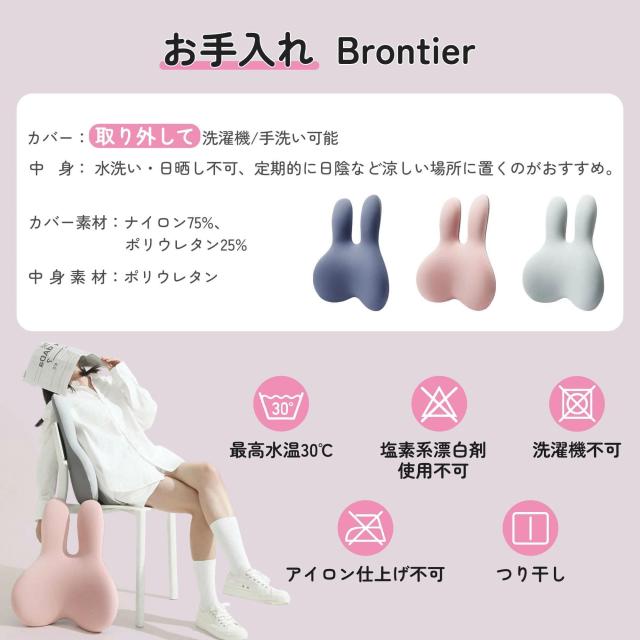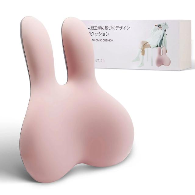 brontier 腰枕 サポートクッション 抱き枕 腰 寝具 ウサギ 車 腰痛 背もたれ 蒸れない かわいい ランバーサポート 人間工学 低反発 肌に優しい バンド付き 調節可能 洗濯可能カバー 勉強 オフィス 運転