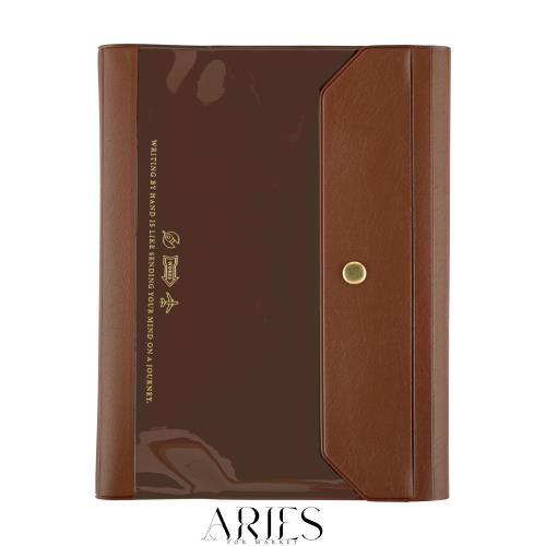 ほぼ日手帳 カズン(A5)手帳カバー aileron(ブラウン) A5サイズのほぼ日手帳本体用の手帳カバーです。 手帳をくるっと包みボタンで留められる3つ折りタイプ。内側にペンフックつき。 「手で書くということはこころを旅に出すようなもの」というメッセージ付き。 やわらかなPVC素材なので、持ち心地も軽やか。スナップボタンで開閉する仕様で、持つ人やシーンを選ばないデザインに仕上がっています。