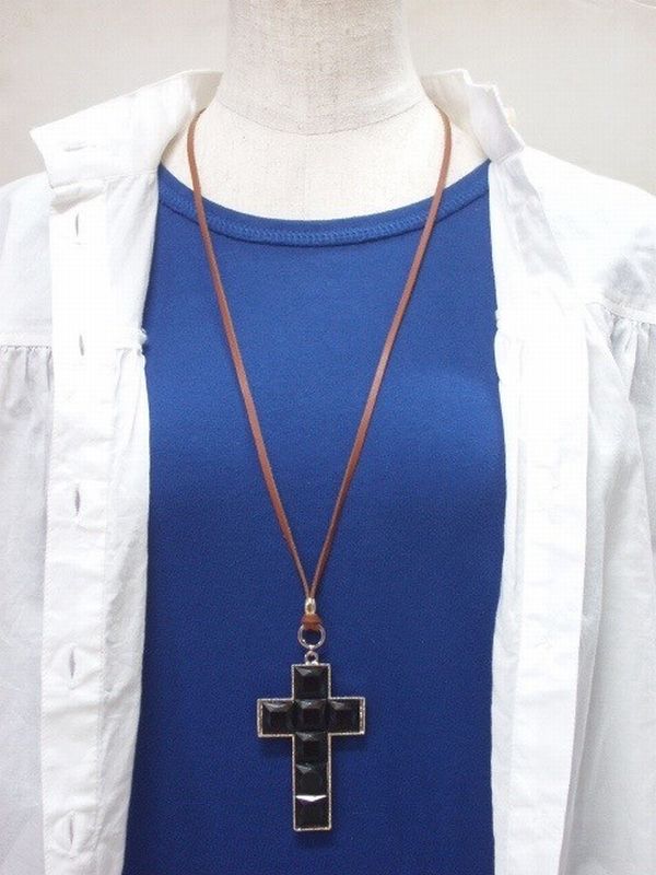 | セレブチックなクロスの本革ロングチョーカーです♪ |