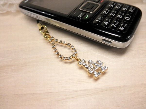 | ストーンびっしりでキラキラなLAトップを連爪ラインストーンベルトから下げた携帯ストラップです♪ |