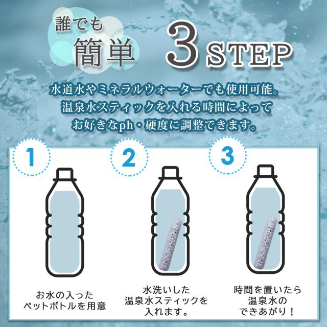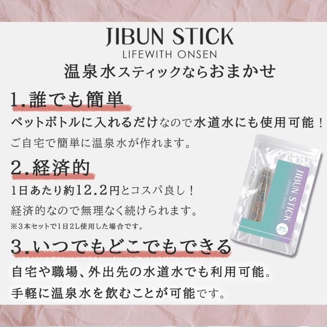 温泉水スティック 3本 JIBUN STICK〜Life With ONSEN p.H最大9.1 湯の華ボール使用 超軟水 シリカ シリカ水 シリカ入り 健康 美容 湯の花 湯ノ華 温泉水生成スティック マイナスイオン ペットボトル