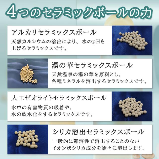 【成分】アルカリセラミックスボール8g、湯の華セラミックスボール2g、シリカ溶出セラミックスボール3g、人工ゼオライトセラミックスボール4g