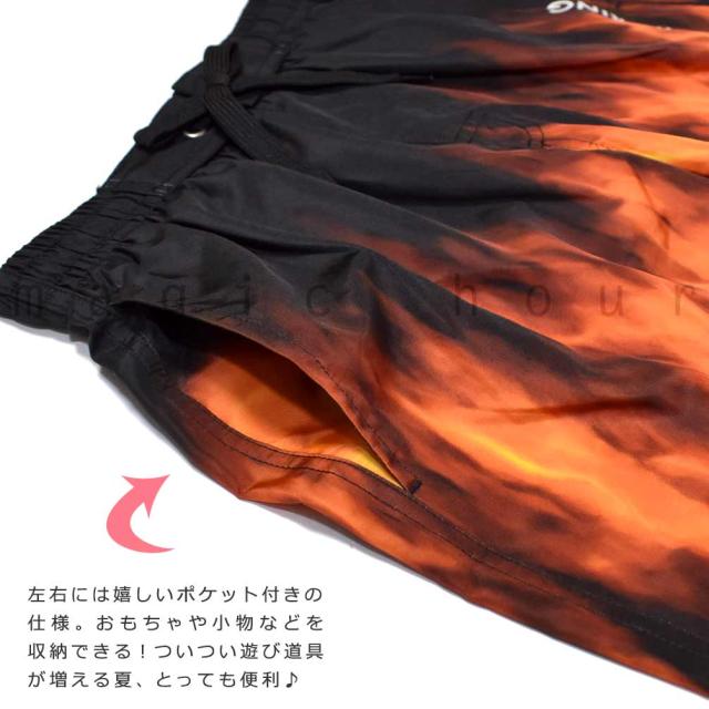 海水浴、プールやアウトドアに使える子どもサイズのお洒落なサーフパンツ♪ ポケット付き・ウエスト調節紐・インナーサポーター内臓で機能性も◎ さらっとした手触りの良い柔らかな速乾素材で動きやすくべたつかず快適に過ごせる! 脱げにくく動きやすいウエストゴム仕様で思いっきり遊べます! |