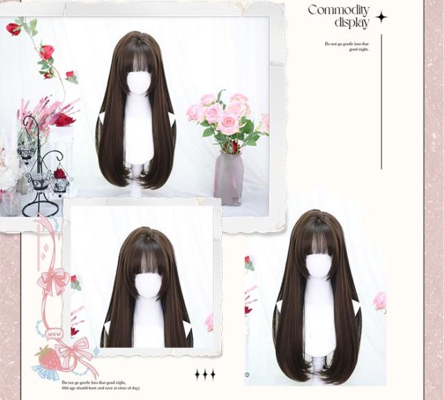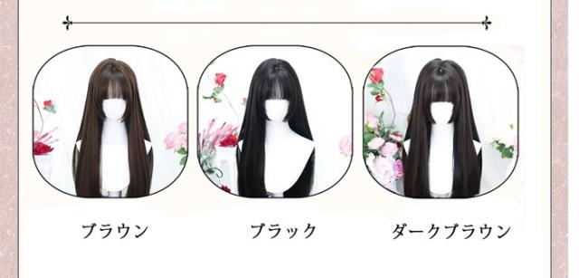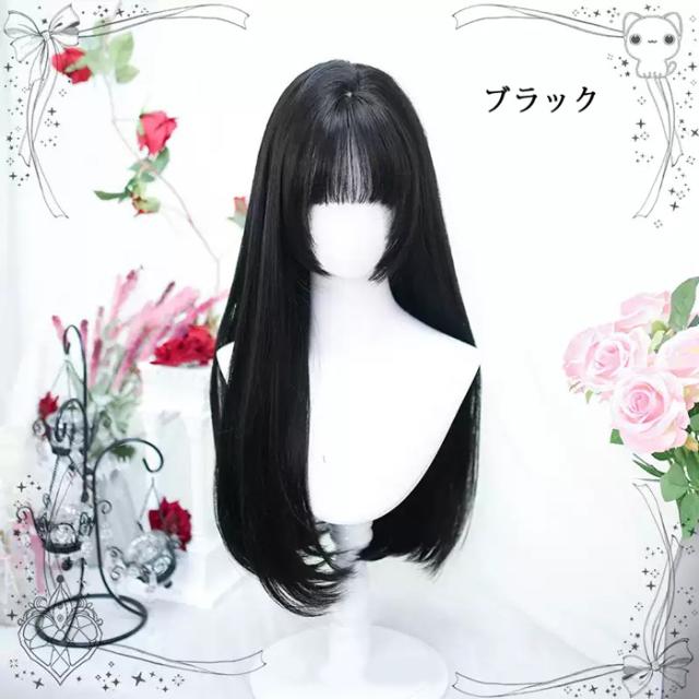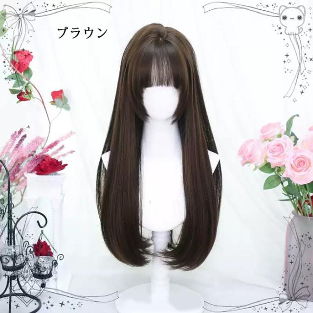 姫カット ウィッグ フルウィッグ ロング ストレート ロングカール ぱっつん前髪 ロリータ 前髪あり 黒髪 日常 原宿風 かつら コスプレ 可愛い コスチューム 仮装 大人用 普段使い 文化祭 イベント 学園祭 ブラック ブラウン ダークブラウン ca039zbzbm6