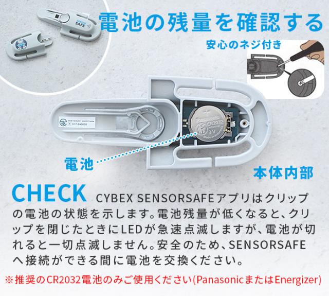 | サイベックスのカーシートのみ対応です。 専用スマホアプリは日本語対応です。 [SENSORSAFEについて] ・本製品は、cybexアプリのみ対応します。(アプリは、Apple App Storeまたは Google Play Storeで入手できます。) ・SENSORSAFEが適切に使用され、その意図された目的に従っていたとしても、本製品はひとつの補助的なサポートシステムとしてのみ機能します。その機能性はいくつかの要因に依存しているため、保証することはできません。 ・お子さまの安全について最終的かつ最も重要な責任は、当該のお子さまのご両親またはその保護者にあります。両親・保護者の法的義務に関しての回避や軽減、それを代替するためのものではありません。 [電池について] 電池の残量は定期的に確認してください。 cybex SENSORSAFEアプリはクリップの電池の状態を示します。電池残量が低くなると、クリップを閉じたときにLEDが急速点滅しますが、電池が切れると一切点滅しません。安全のため、SENSORSAFEへ接続ができる間に電池を交換ください。 ※推奨のCR2032電池のみご使用ください(PanasonicまたはEnergizer) [警告] ・本品はお子さまの危機的状況を知らせる製品ですが、お子さまから目を離したり、お子さまを車の中に絶対に放置しないでください。重大な事故に繋がる恐れがあります。 ・SENSORSAFEが完全に機能するためには、スマートフォンとの通信が必要です。常にスマートフォンを持ち歩き、SENSORSAFEに必要とされるスマートフォンのすべての機能をオンにしてください。 ・取扱説明書は、常にカーシート近くの手元に置いてください。 ・SENSORSAFEは承認対象製品リストに記載されているサイベックスのカーシート以外では絶対に使用しないでください。他の製品でご使用になると、お子さまに重大な危険をもたらす可能性があります。 ・電池切れや通信の不具合、製品お取り扱いの誤りによるすべての出来事に対し、一切の責任を負いかねます。 |