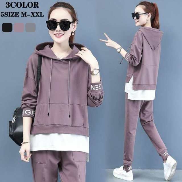 ジャージ レディース 上下 おしやれ 春秋 長袖 セットアップ カジュアル 40代 2点セット スウェット トレーナー スポーツウェア 運動服 部屋着 韓国風 着痩せ