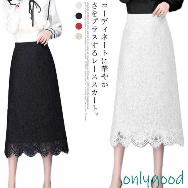 レディース スカート ロング タイト レースタイトスカート 総レース 高見え ミモレ ブラック ホワイト ベージュ レッド 春 夏 秋 冬