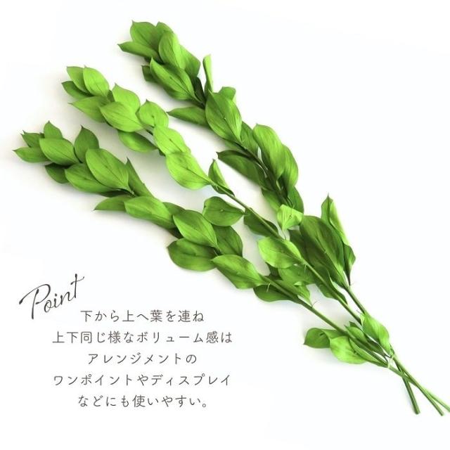 ドライフラワー プリザーブドフラワー ルスカスガーデン フレッシュグリーン 3本入り 約L50〜60cm 天然素材 リーフ 葉物 枝物 花材 アレンジメント グリーン 緑 インテリア