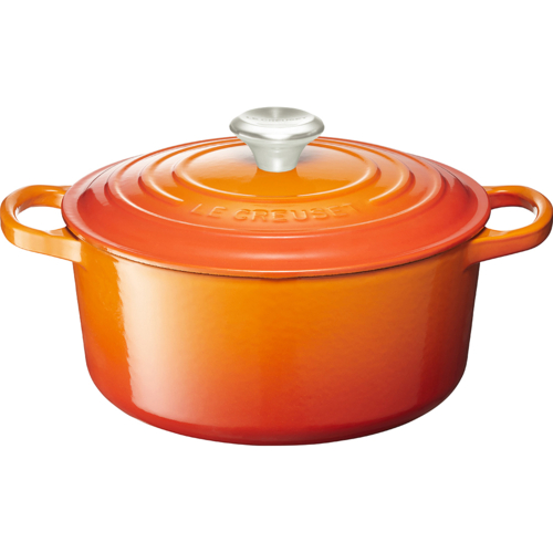 ル・クルーゼ(LE CREUSET) 【日本正規品】鋳物ホーロー鍋 両手鍋 シグニチャー ココット ロンド22cm BM加工 オレンジ ガス/IH対応