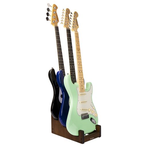 STRICH ギタースタンド 3本掛け 木製フロアギターラック フロントディスプレイ 省スペース 自宅 スタジオ ステージ用 マルチギタースタンド ウォルナット色 L-3EW (エレキ/ベース3本用)