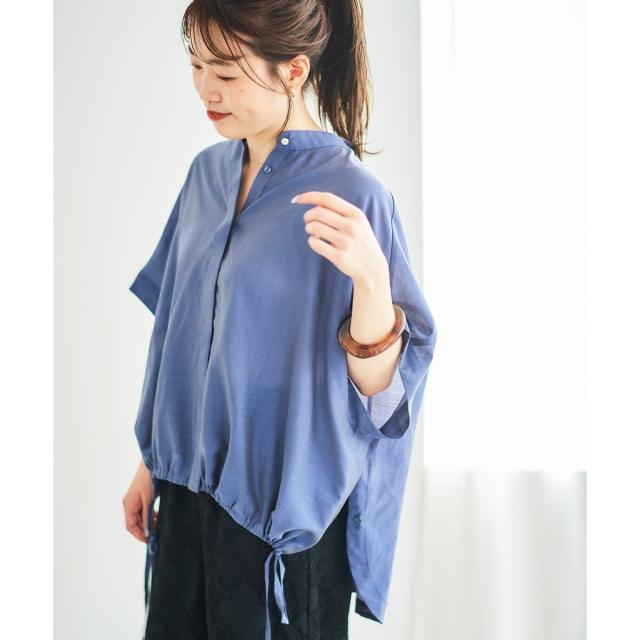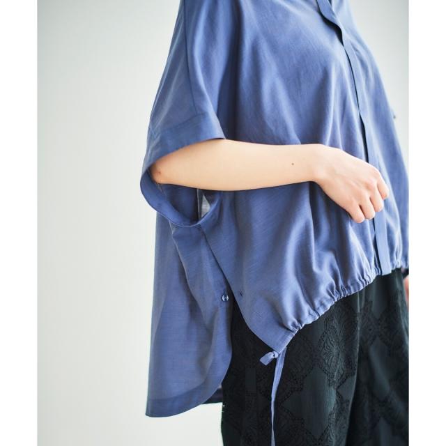 《手洗い可能》シアー麻シャンブレードロストギャザーシャツ