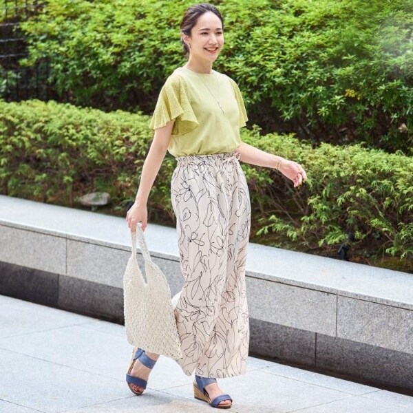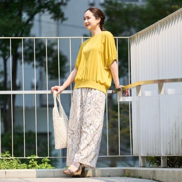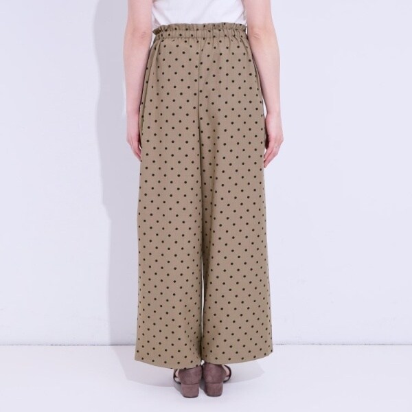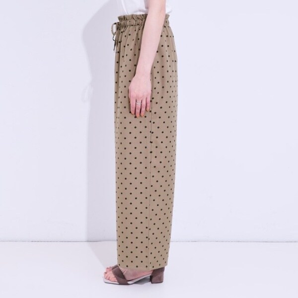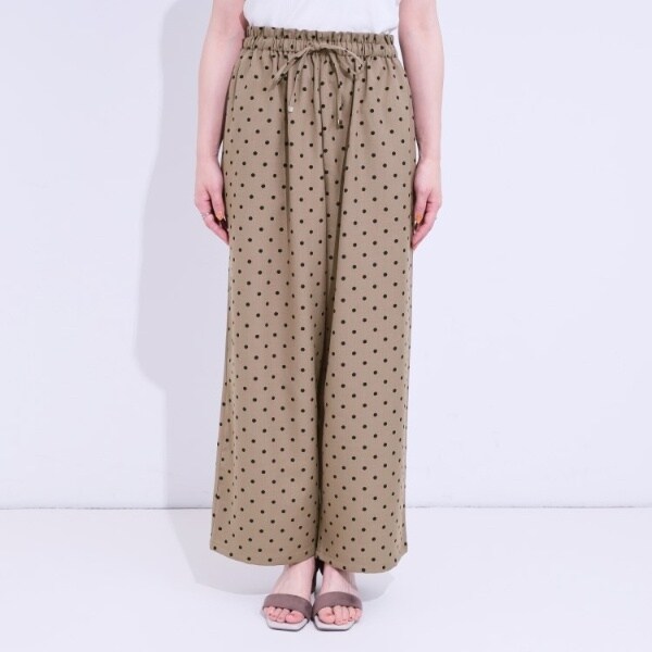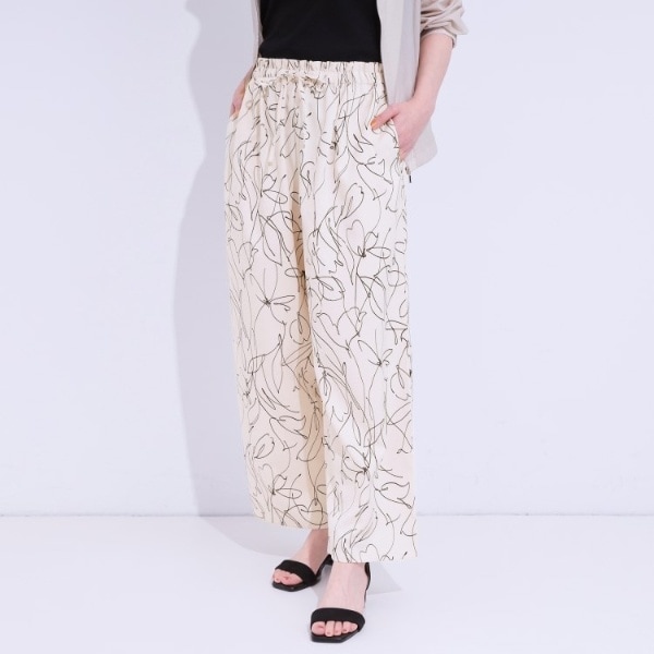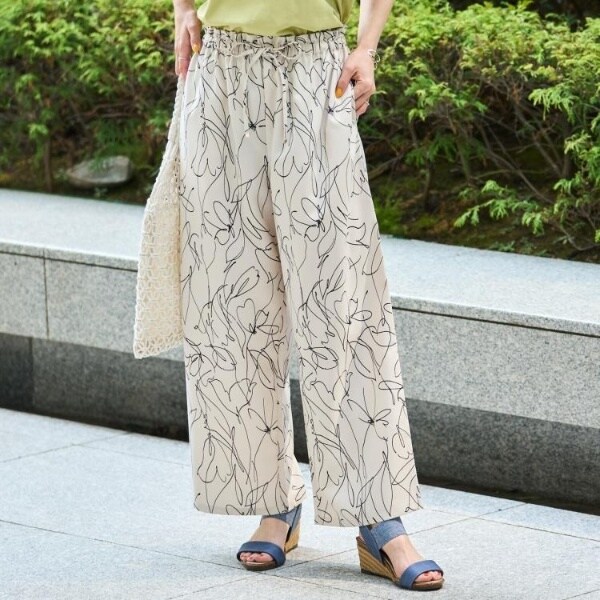 麻調のサラッとした素材にプリント柄を施したイージーワイドパンツです。