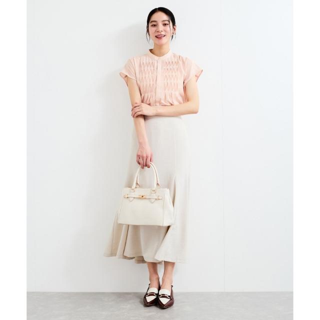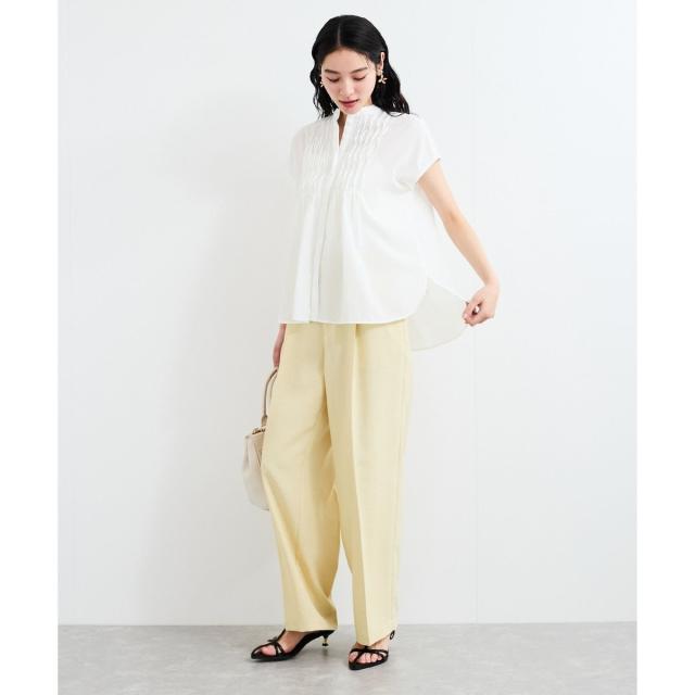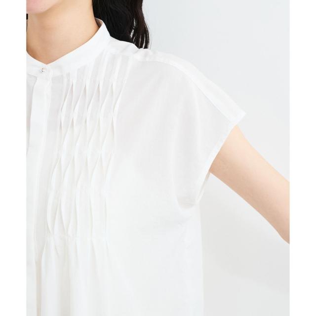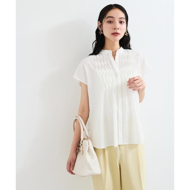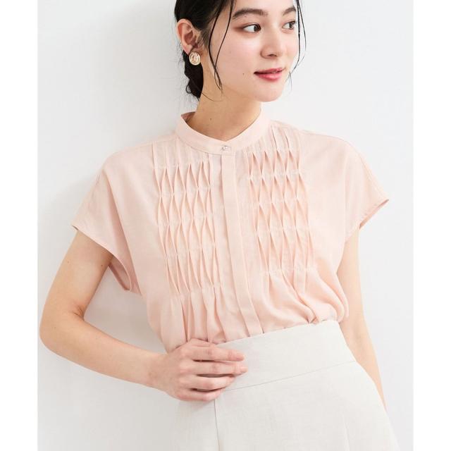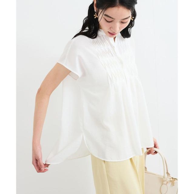 フロントのピンタックデザインが華やかな印象を与えてくれる1着。