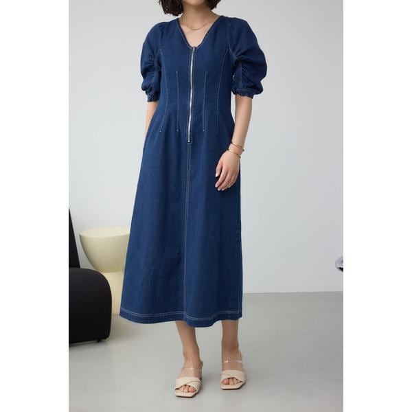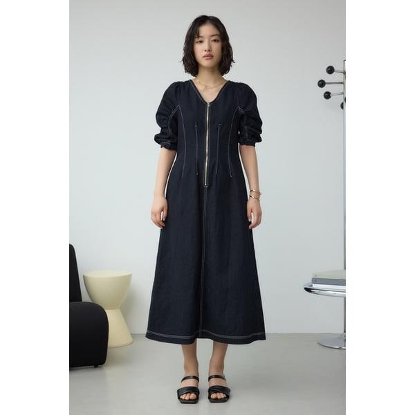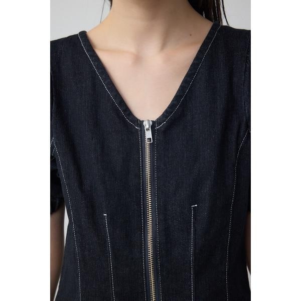アズールバイマウジー(AZUL BY MOUSSY)/フロントジップ半袖デニムワンピース
