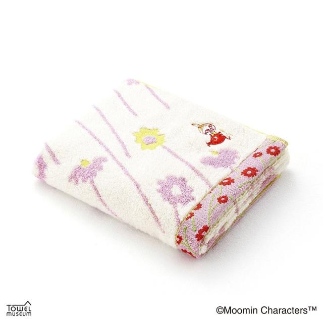 お花畑の中を、元気いっぱいに駆け抜けるリトルミイの姿がデザインされたタオルです。