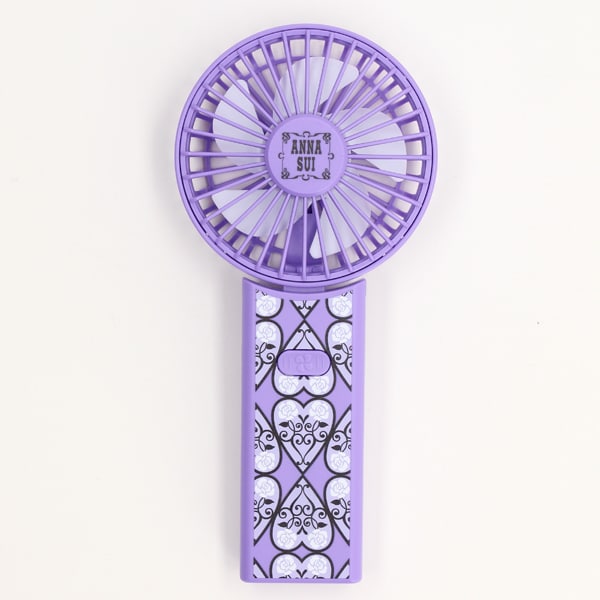 折り曲げて卓上に置くこともできるポータブルハンディファン。専用BOXにハンディファンと収納用の巾着をセットしました。ANNA SUIならではのインパクトのあるデザインが目を惹き、ギフトにもおすすめです。