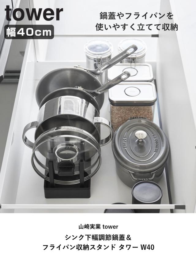山崎実業 tower シンク下幅調節鍋蓋&フライパン収納スタンド タワー W40 ( 4903208013611 タワーシリーズ シンク下 鍋蓋&フライパン収納スタンド フライパンラック シンク下収納 鍋蓋立て 幅40cm )