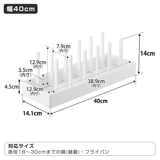 幅40cmでシンク下では縦にも横にも使えます。横並びに2台使用すれば、フライパンから鍋蓋までまとめてスッキリ整頓できます。