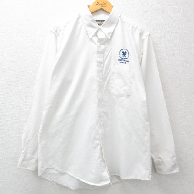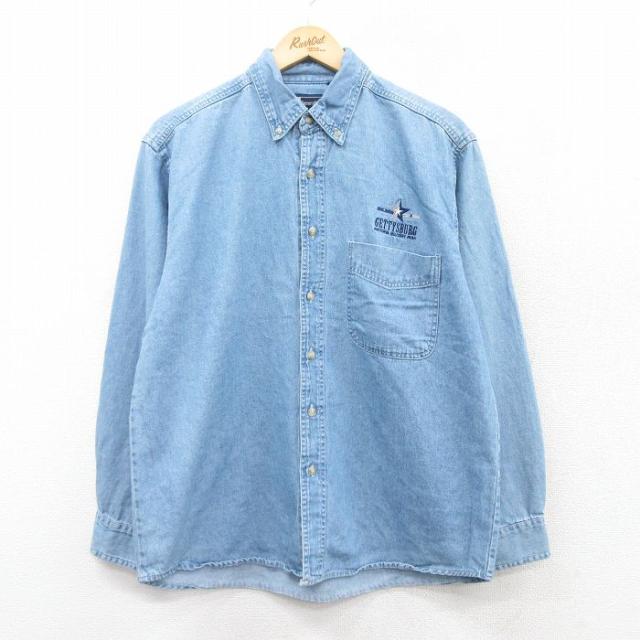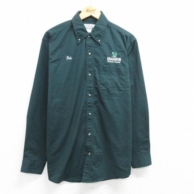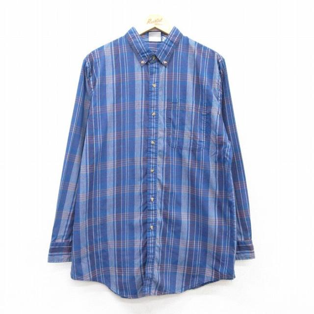 古着 長袖 シャツ メンズ ロング丈 ボタンダウン 紺 ネイビー Lサイズ 中古 トップス 中古 古着
