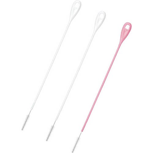 まめいた ストローブラシ 洗浄ブラシ クリーナー ロングタイプ ホワイト ピンク(3本)[たわし・スポンジ]