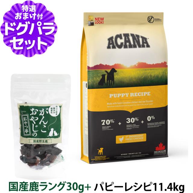 【沖縄以外送料無料】アカナ パピーレシピ 11.4kg +国産鹿肉ラング30g