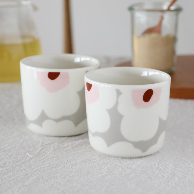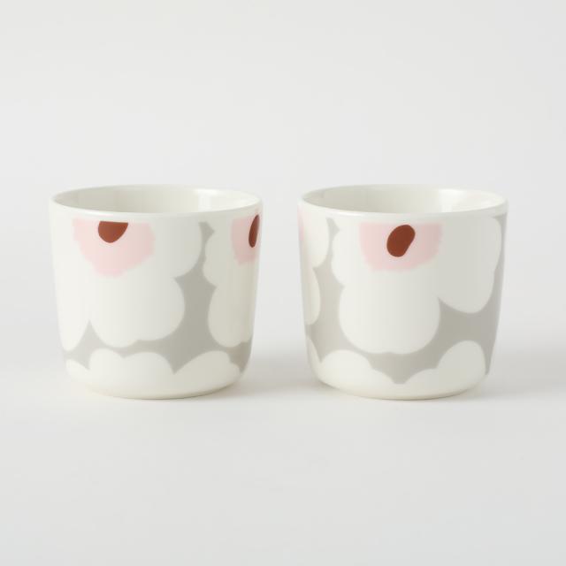 【SALE 15%OFF】【正規品】【日本限定】marimekko / マリメッコ Unikko(ウニッコ) ラテマグ カラー80 ライトグレー×ライトピンク コーヒーカップセット ハンドルなし 2個入り 花柄 プレゼント ギフト おしゃれ 2025春夏 ts1031