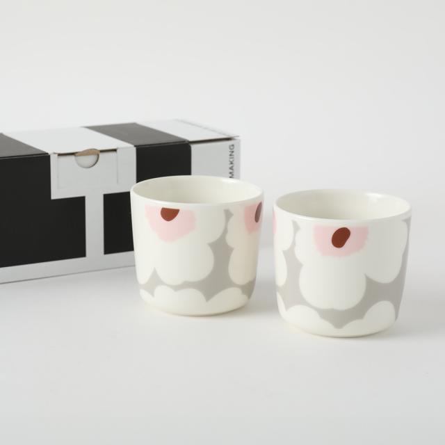 | marimekko / マリメッコ コーヒーカップセット 2個セット ラテマグ (専用ボックス入り) Unikko カラー80(ライトグレー)