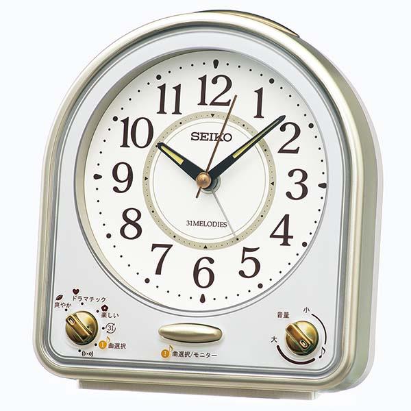 セイコー QM750G メロディ目覚まし時計 薄金色パール&白パール SEIKO