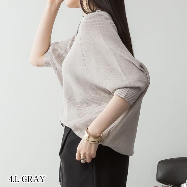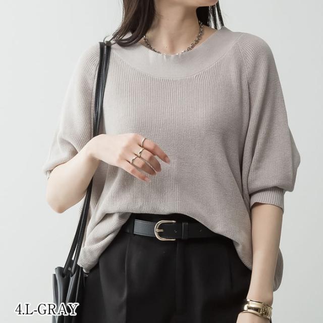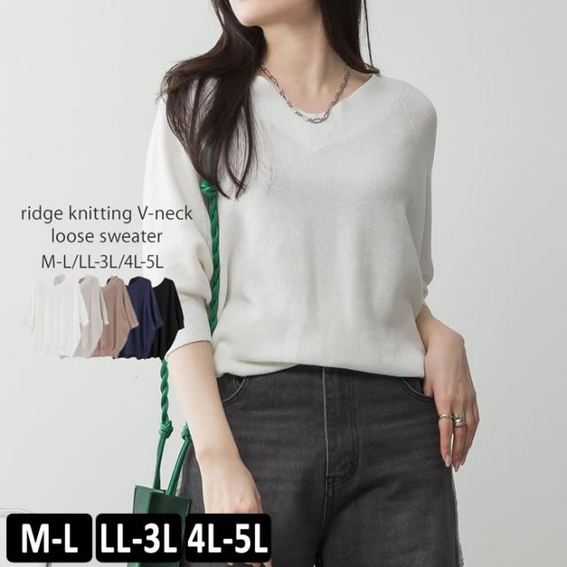 ニット vネック クルーネック ゆうメール便送料無料 半袖 5分袖 畦編み カジュアル おしゃれ 5営業日以内入荷 大きいサイズ レディース M L LL 3L 4LLARU ラルー 畦編みルーズセーター