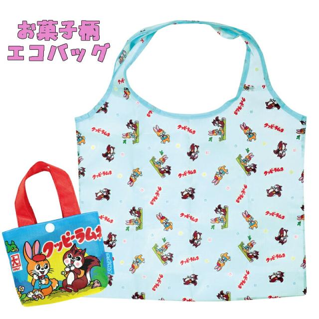 【対象商品よりどり4点以上でメール便送料無料】お菓子柄エコバッグ クッピーラムネ 総柄 買い物バッグ トート 袋 収納袋 お出かけ かわいい 雑貨 おしゃれ レディース 中高生 子ども (FAE282 jp79023)