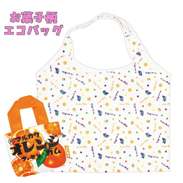 【対象商品よりどり4点以上でメール便送料無料】お菓子柄エコバッグ オレンジ フーセンガム 駄菓子 総柄 買い物バッグ トート 袋 収納袋 お出かけ かわいい 雑貨 おしゃれ レディース 中高生 子ども (FAE303 jp79024)