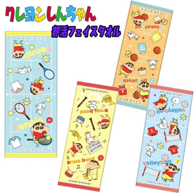 【メール便送料無料】クレヨンしんちゃん フェイスタオル 部活シリーズ 吹奏楽/バスケ/バレー/テニス 綿 お風呂 洗面所 洗面台 手洗い 手拭き 子供 大人 小中高生 雑貨 キャラクターグッズ お祝い プレゼント ギフト (KS-5538321-22-23-24 ts68024)