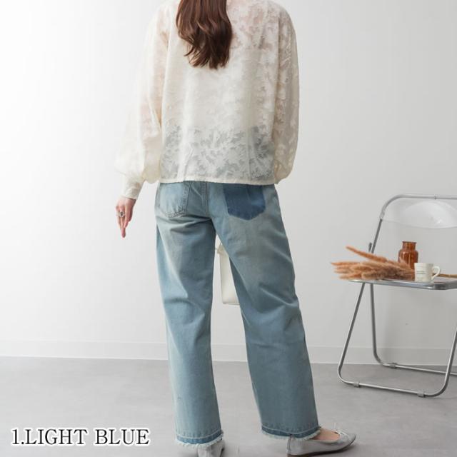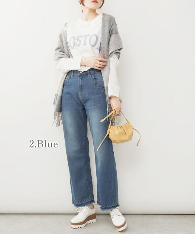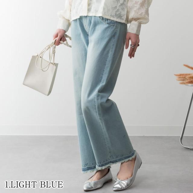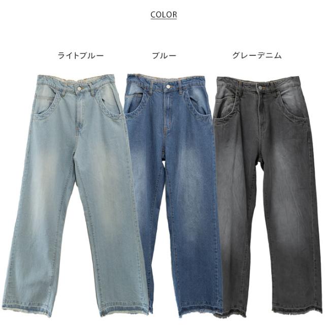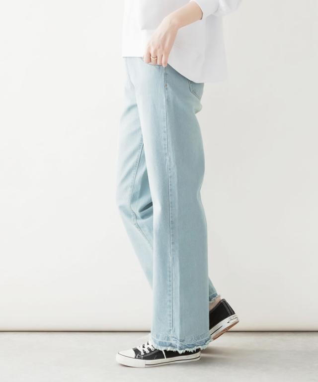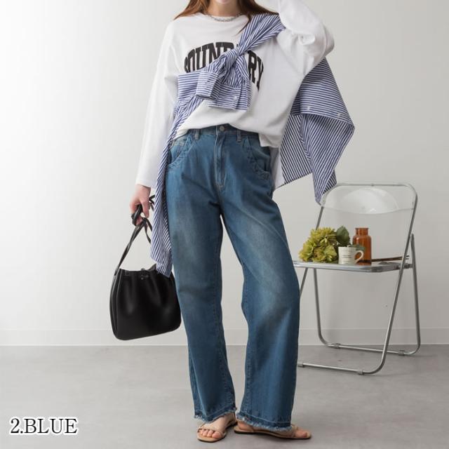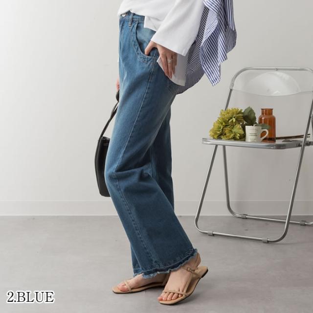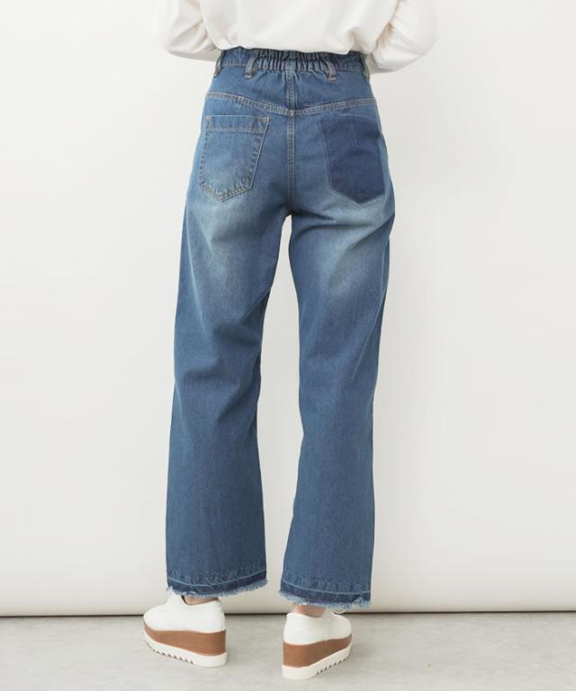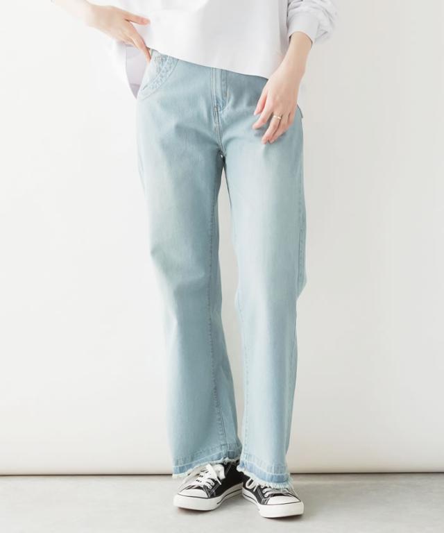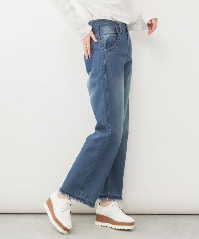デニム パンツ 宅配便配送 セミワイド ストレート ビンテージ風 フリンジ加工 おしゃれ 5営業日以内入荷 大きいサイズ レディース M L LL 3L 4LLARU ラルー ヴィンテージ風ポケット加工セミワイドパンツ