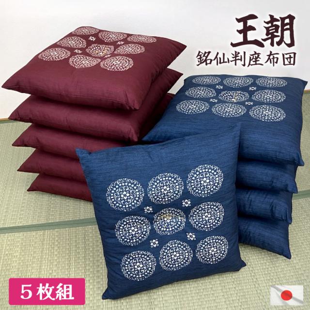 日本製 座布団 王朝 5枚組 銘仙判 色組み合わせ自由 発送日当日のわた入れ 送料無料 コットン プリント 法事 来客用 和調 和柄 飲食店 居酒屋 綿 おしゃれ オールシーズン 新築祝い 引っ越し祝い 宴会場 ホテル 料亭 民宿 民館 旅館 業務用 フロアクッション 選べる 5枚セット