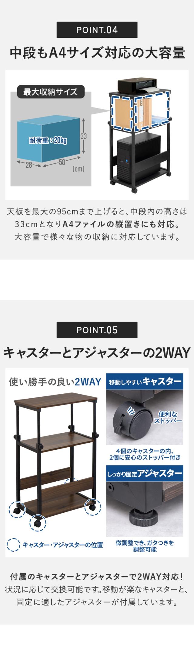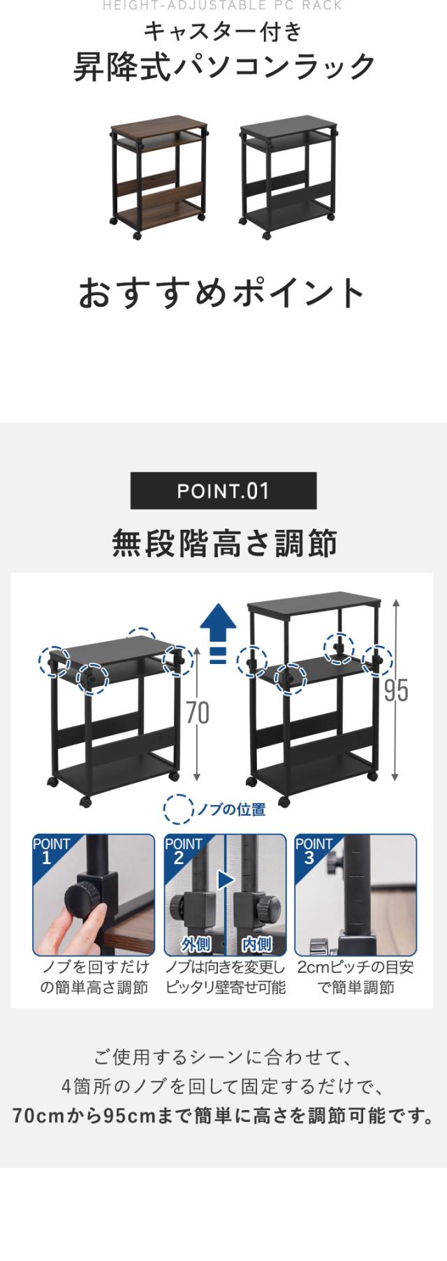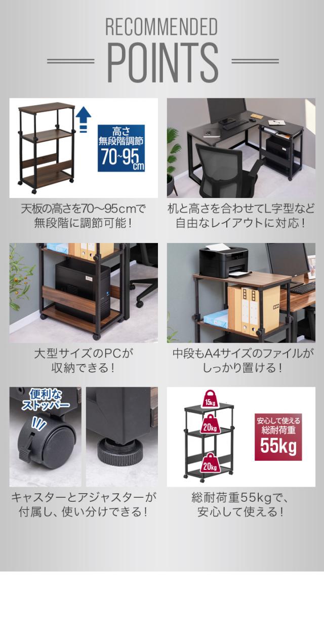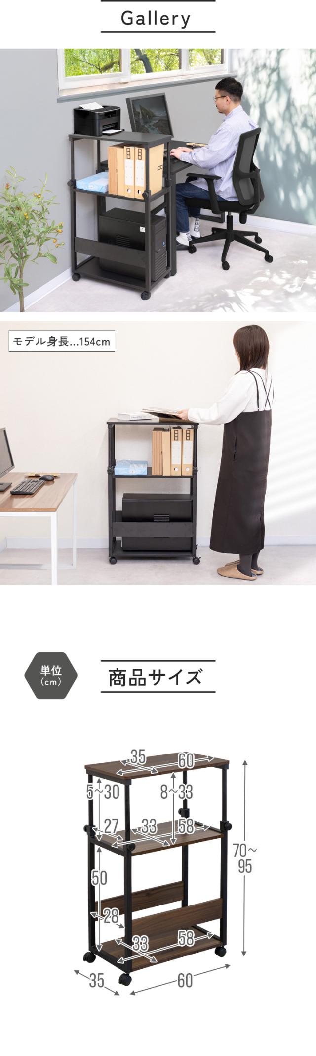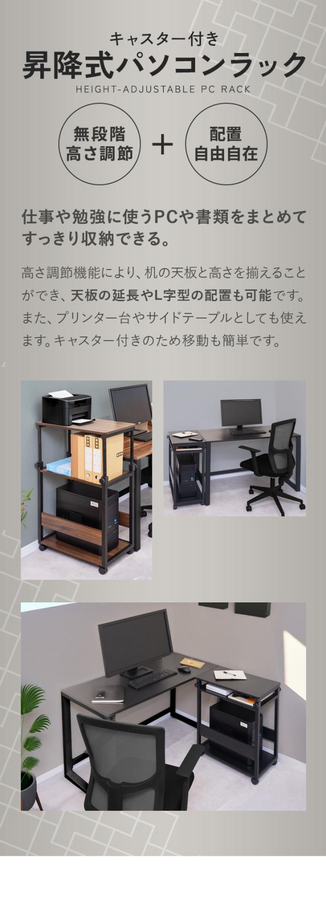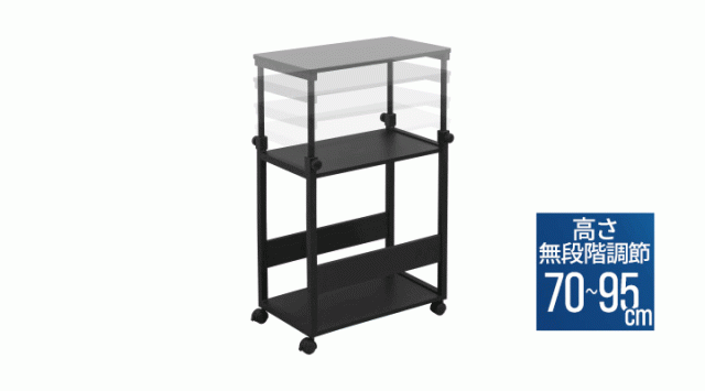 サイドワゴン キャスター付き 昇降式 高さ調節 高さ70cm〜95cm 幅35cm スリム サイドデスク 昇降ワゴン PCラック プリンター台 PCワゴン デスクワゴン パソコンラック オフィス収納 L字デスク 袖机 脇机 パソコンワゴン デスク下収納 送料無料
