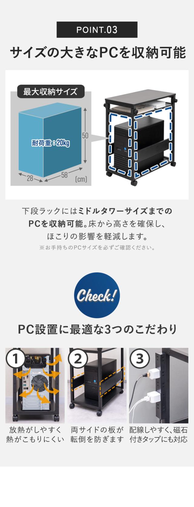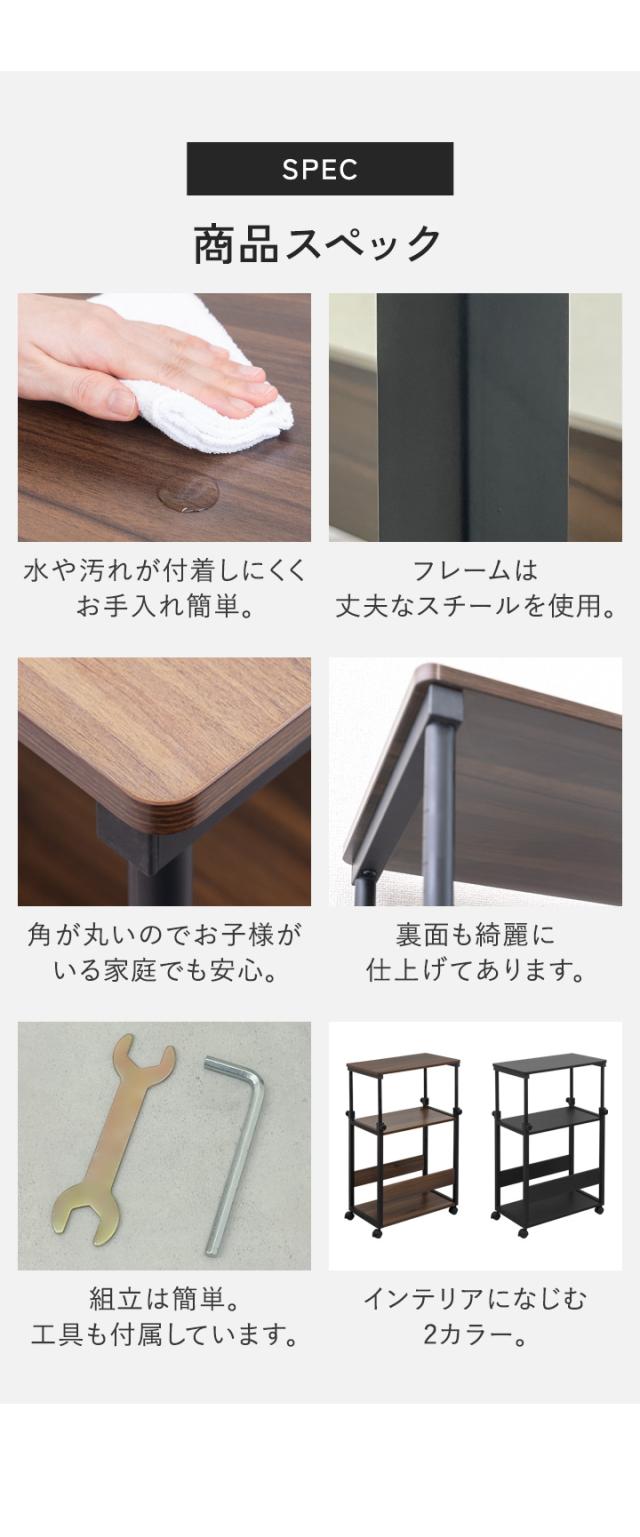 | 耐荷重: ・天板:15kg ・中段:20kg ・下段:20kg ・全体の耐荷重:55kg |