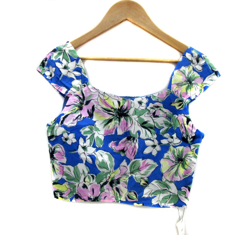 【中古】未使用品 スナイデル ビスチェ キャミソール ショート丈 スクエアネック 花柄 F 青 レディース
