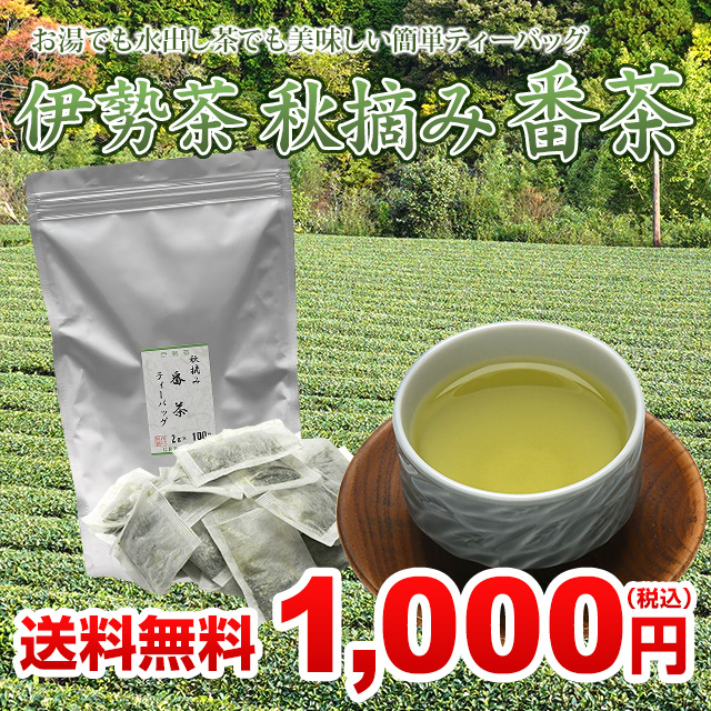1000円ポッキリ ばん茶 ティーパック 日本茶 ティーバッグ 伊勢茶 秋摘み 番茶 パック 2gx100p メール便 送料無 送料込 ( 茶葉 お茶 水出し 日本茶 ティーパック 美味しい おすすめ 国産 三重県産 伊勢 丸中製茶